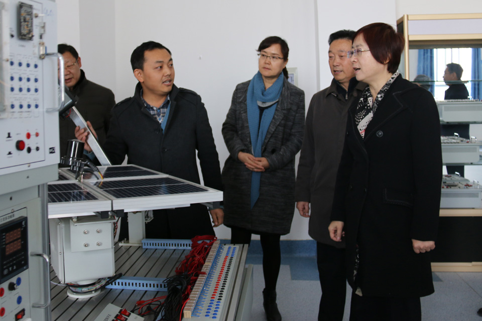 王海燕、王雁一行參觀了我院能源工程系熱工實(shí)驗(yàn)室、電氣綜合實(shí)驗(yàn)室、光伏發(fā)電系統(tǒng)實(shí)驗(yàn)室、光伏發(fā)電系統(tǒng)仿真與測(cè)試實(shí)驗(yàn)室、光伏器件生產(chǎn)實(shí)驗(yàn)室和醫(yī)學(xué)實(shí)驗(yàn)實(shí)訓(xùn)室、生命科技館、無(wú)紙化考試中心等地,就實(shí)驗(yàn)實(shí)訓(xùn)設(shè)備的功能和在教學(xué)中的應(yīng)用做了詳細(xì)了解。
