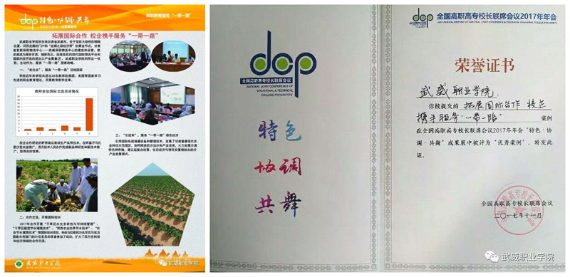 為了進(jìn)一步推進(jìn)優(yōu)質(zhì)高職院校設(shè)施農(nóng)業(yè)與裝備專業(yè)項(xiàng)目組的建設(shè)進(jìn)程,我系積極組織教師學(xué)習(xí)新的教育教學(xué)理念和教學(xué)方法,積極推行專業(yè)人才培養(yǎng)模式、教學(xué)方法、實(shí)踐教學(xué)等的改革。在11月全國高職高專校長聯(lián)系會議教學(xué)成果展中,我系選送的“拓展國際合作,校企攜手服務(wù)‘一帶一路’”教學(xué)成果案例當(dāng)選為全國教學(xué)成果優(yōu)秀案例,該案例是甘肅省2017年全國高職高專校長聯(lián)席會議教學(xué)成果展中唯一獲獎的案例,是我系扎實(shí)推進(jìn)優(yōu)質(zhì)高職院校建設(shè)的重大成果。