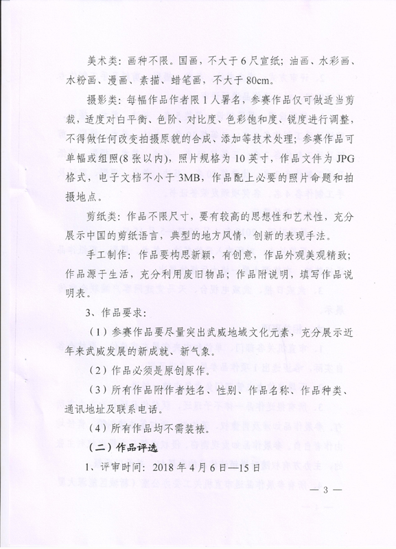 現(xiàn)將中共武威市委宣傳部、中共武威市直屬機(jī)關(guān)工作委員會(huì)《關(guān)于舉辦市直機(jī)關(guān)“不忘初心? 牢記使命”藝術(shù)作品展的通知》(武市直發(fā)〔2018〕9號(hào))轉(zhuǎn)發(fā)你們,請(qǐng)各部門(mén)、單位根據(jù)要求認(rèn)真組織,積極參與。將參賽作品于4月2日前報(bào)宣傳統(tǒng)戰(zhàn)部辦公室,宣傳統(tǒng)戰(zhàn)部對(duì)報(bào)送作品匯總后統(tǒng)一報(bào)送市直屬機(jī)關(guān)工委。