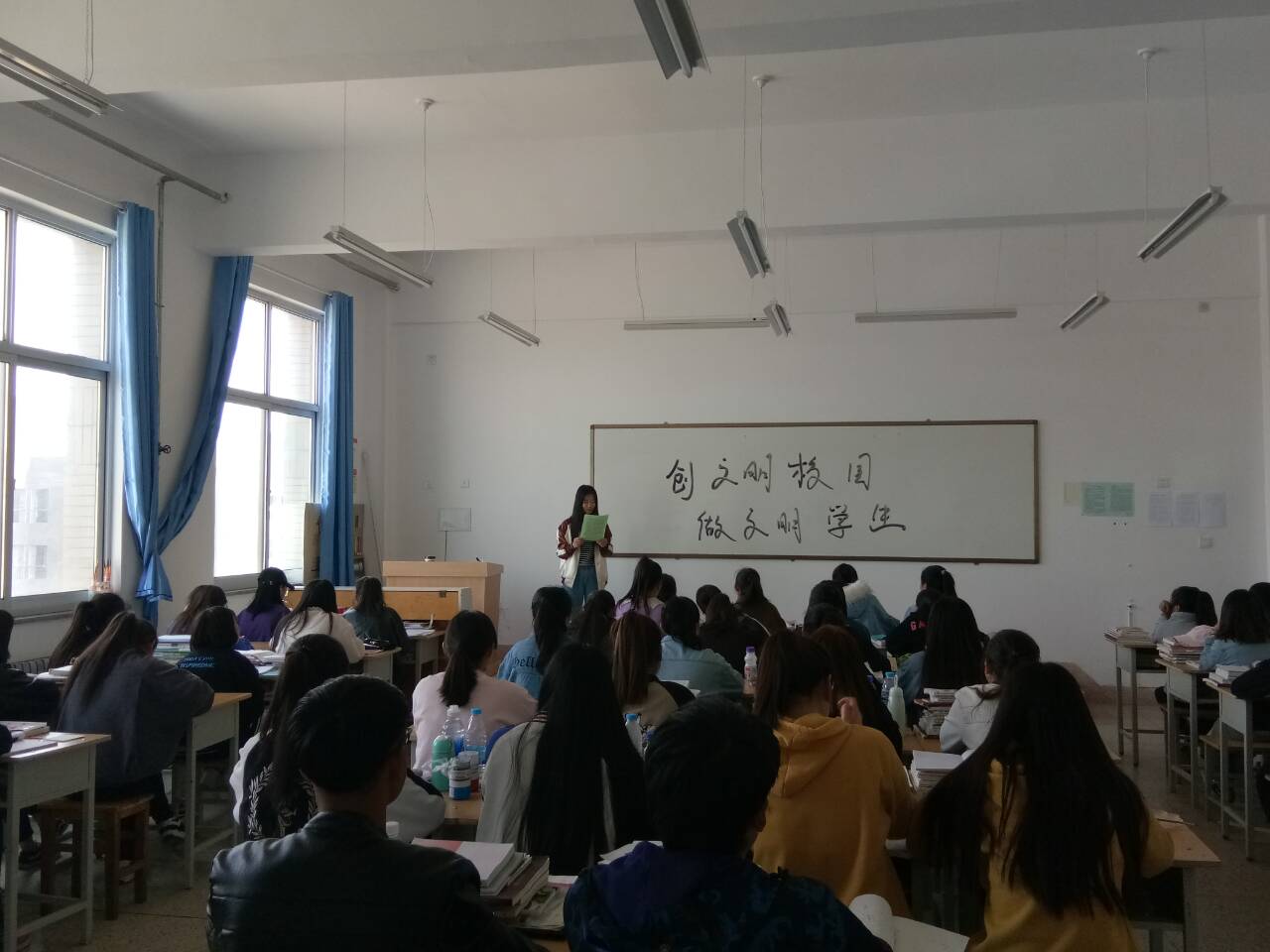 4月20日,人文藝術(shù)教育系組織全體教師學習了《中共武威職業(yè)學院委員會關(guān)于成立創(chuàng)建全國文明城市工作領導小組的通知》《武威職業(yè)學院創(chuàng)建全國文明城市三年規(guī)劃(2018-2020)》《武威職業(yè)學院創(chuàng)建全國文明城市2018年工作實施方案》文件精神,通過教研室活動,認真學習了《你我攜手 共創(chuàng)文明》倡議書,自覺遵守教師行為守則和管理規(guī)范,自覺維護辦公室環(huán)境,以實際行動踐行文明承諾,以模范行為影響身邊人、身邊事。學生通過主題班會,學習了《創(chuàng)文明校園 做文明學生》和《共同創(chuàng)建文明城市》倡議書,自覺愛護公物,不亂貼亂畫,不亂扔垃圾,不講粗話臟話,不隨地吐痰,不破壞公共設施,用實際行動踐行社會主義核心價值觀。