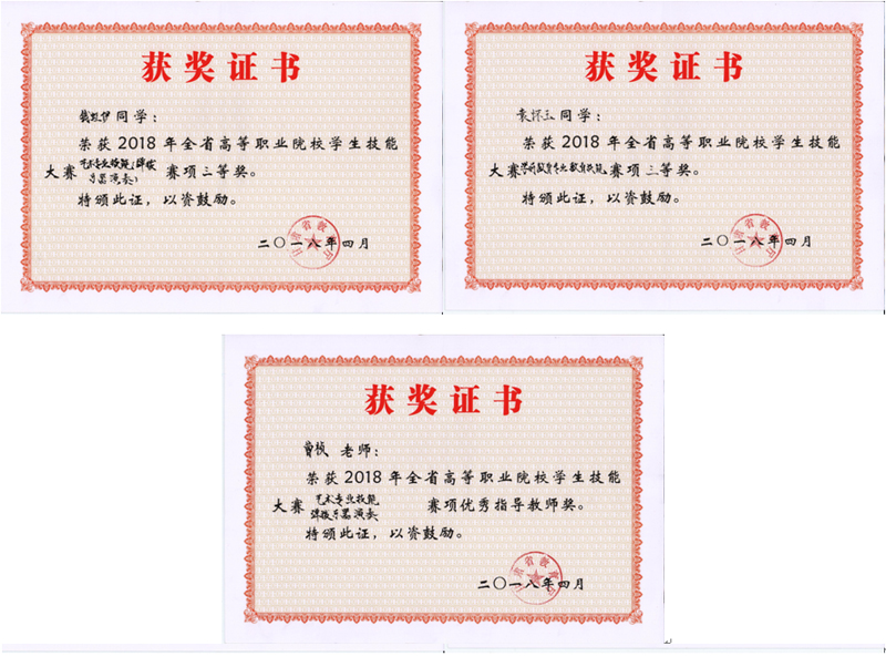 人文藝術教育系學生在2018年全省高職院校技能大賽中獲獎