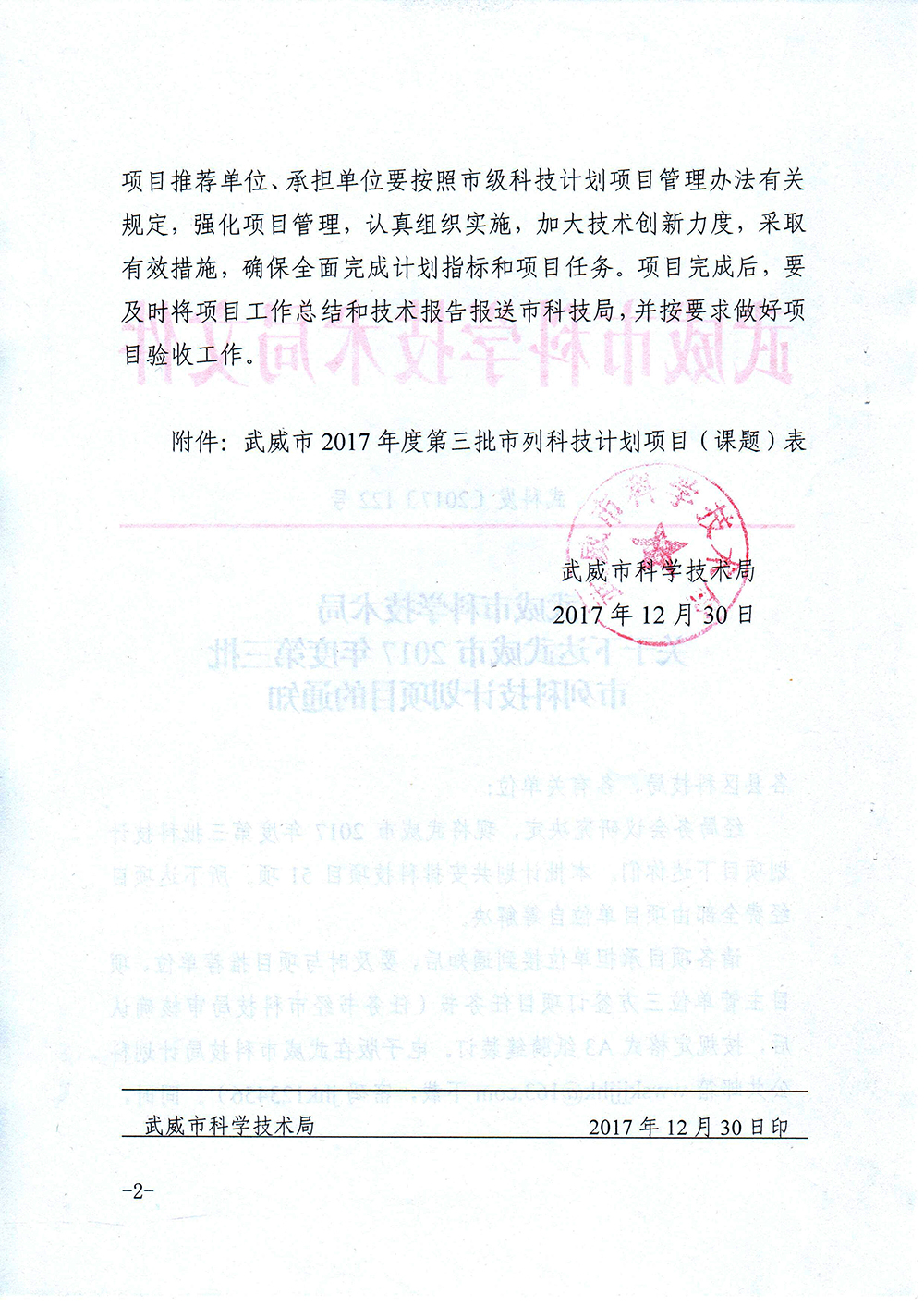 轉(zhuǎn)發(fā)武威市科學(xué)技術(shù)局關(guān)于下達(dá)武威市2017年度第三批市列科技計劃項目的通知