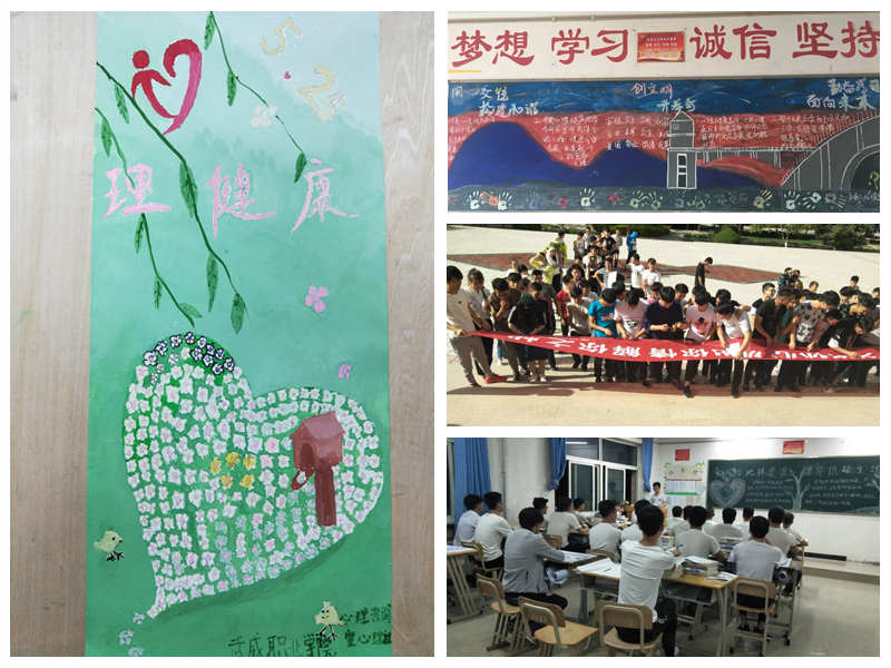 建筑工程系各班以“綠色環(huán)保,低碳生活”開展了主題班會,為同學們建立全新的生活觀,養(yǎng)成良好的生活習慣。而手機對現(xiàn)在青少年的危害越來越大,嚴重影響正常生活學習。同時以“放下手機,走出宿舍”為主題的黑板報,教育引導同學們多去外面看看,更多關(guān)注外面精彩世界。各班以心理健康知識競賽、心理健康美文朗誦、心理健康漫畫等多種形式宣傳更多心理健康知識,幫助同學們更好的調(diào)解好自己的心情,爭做健康積極的學生。最后全系學生在博學樓前舉行以“交出你心,說出你情,解你之憂”為主題的橫幅簽名,讓同學們更好的關(guān)注自己的心理健康和心理成長。