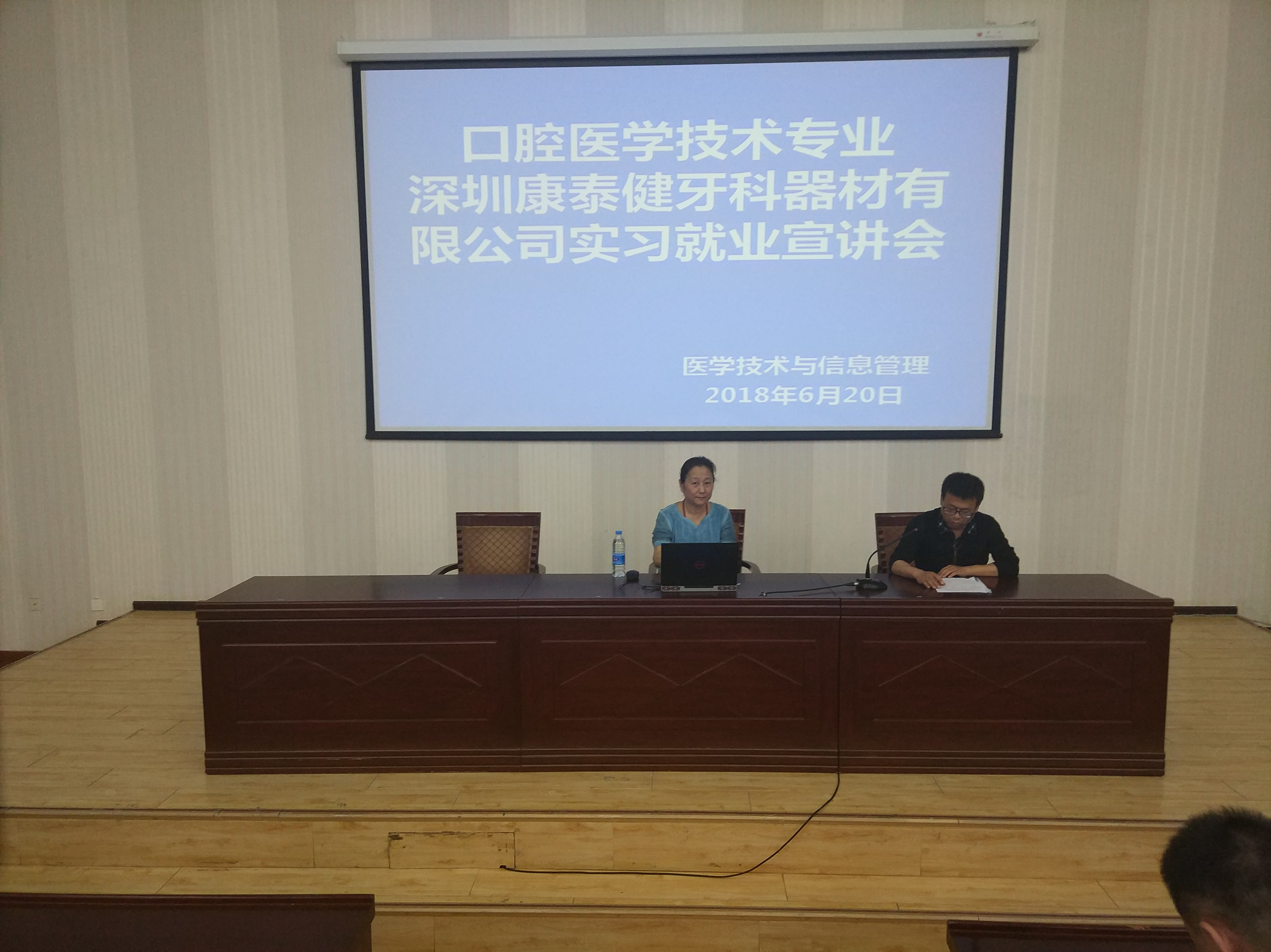 辛金紅校長(zhǎng)對(duì)口腔醫(yī)學(xué)技術(shù)專業(yè)的發(fā)展歷史和當(dāng)前口腔醫(yī)學(xué)技術(shù)的前景做了詳細(xì)介紹;介紹了深圳市康泰健牙科器材有限公司的概況、理念、人才策略,對(duì)新員工的具體要求和發(fā)展通道;對(duì)同學(xué)最關(guān)心的實(shí)習(xí)期間的待遇進(jìn)行了現(xiàn)場(chǎng)解答。