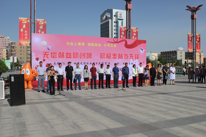為保障臨床用血安全,給我市創(chuàng)建全國(guó)文明城市活動(dòng)增亮添彩,由武威市衛(wèi)生計(jì)生委、武威市紅十字會(huì)主辦,武威市中心血站承辦的“世界無(wú)償獻(xiàn)血者日”大型宣傳、義診、獻(xiàn)血活動(dòng)于6月14日在武威市文化廣場(chǎng)隆重舉行。學(xué)院附屬醫(yī)院醫(yī)護(hù)人員、學(xué)院紅十字志愿者方隊(duì)、無(wú)償獻(xiàn)血獲獎(jiǎng)?wù)叻疥?duì)等30余家單位的干部群眾參加了活動(dòng)。