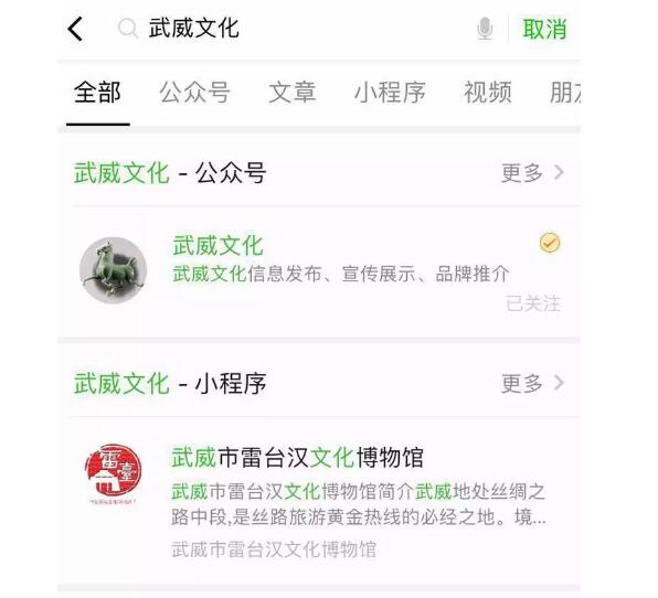 關(guān)注“武威文化”微信公眾號(hào)有兩種方式
