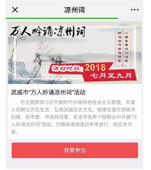參與武威市“萬(wàn)人吟誦涼州詞”網(wǎng)絡(luò)誦讀活動(dòng)主要有以下三個(gè)步驟: