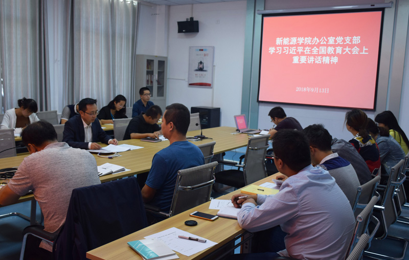 為更好地學(xué)習(xí)和貫徹落實全國教育大會精神,加強(qiáng)師德師風(fēng)建設(shè),強(qiáng)調(diào)責(zé)任擔(dān)當(dāng),13日下午,新能源學(xué)院辦公室黨支部在黨員活動室召開學(xué)習(xí)全國教育大會精神專題會議。會議由黨支部書記任陶主持,支部全體黨員參加了本次會議。