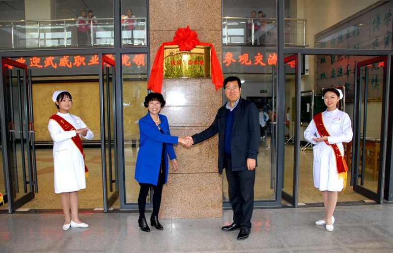 10月21日在天水市衛(wèi)生學(xué)校,潘玉華和天水衛(wèi)校校長毛如君為“武威職業(yè)學(xué)院優(yōu)質(zhì)生源基地”揭牌,天水衛(wèi)校校領(lǐng)導(dǎo)班子成員和相關(guān)處室負(fù)責(zé)人參加了揭牌儀式。之后毛如君介紹了學(xué)校發(fā)展情況和校園整體規(guī)劃,并陪同潘玉華一行參觀了學(xué)校的教學(xué)樓、實(shí)驗(yàn)實(shí)訓(xùn)樓、學(xué)生公寓、學(xué)生食堂等教學(xué)設(shè)施和生活環(huán)境。
