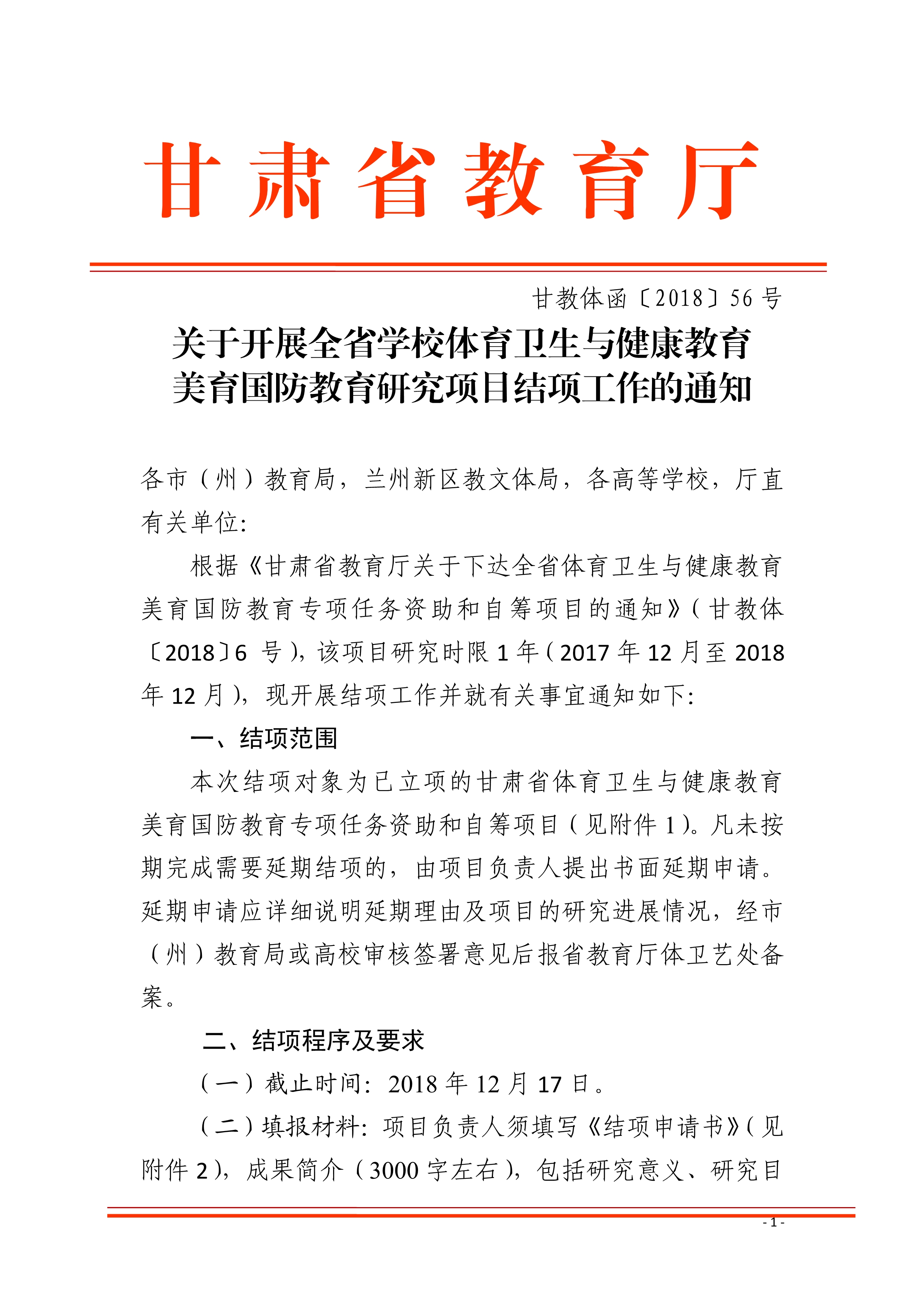 轉(zhuǎn)發(fā)關于開展全省學校體育衛(wèi)生與健康教育__美育國防教育研究項目結(jié)項工作的通知