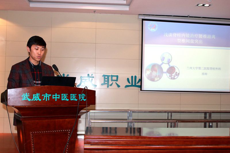 蘭大二院脊柱外科副主任醫(yī)師邢帥以《淺談脊柱內(nèi)鏡治療腰椎游離型椎間盤突出》為題,講授游離型腰椎間盤突出癥經(jīng)椎間盤鏡下椎間盤髓核摘除手術(shù)治療路徑及效果。在場醫(yī)務(wù)人員就該技術(shù)的路徑與方法,醫(yī)療安全性等問題,與邢帥醫(yī)師展開熱烈討論。邢帥認為,鏡下手術(shù)治療游離型腰椎間盤突出癥具有手術(shù)安全、創(chuàng)傷小、費用低、術(shù)后脊柱穩(wěn)定性好等優(yōu)點,值得臨床推廣應(yīng)用。