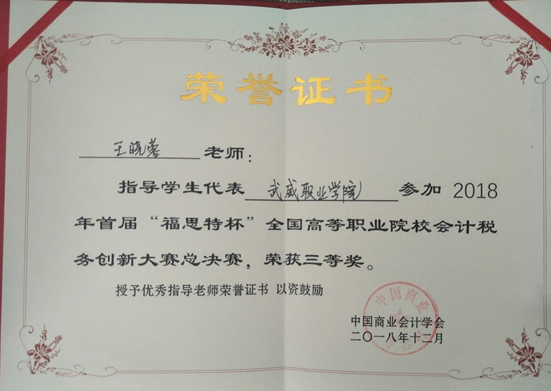 本次比賽得到學(xué)院領(lǐng)導(dǎo)、系領(lǐng)導(dǎo)的高度重視與大力支持。經(jīng)濟(jì)管理系專門成立了輔導(dǎo)小組,嚴(yán)格按照國(guó)賽要求進(jìn)行實(shí)戰(zhàn)訓(xùn)練。近年來,經(jīng)濟(jì)管理系參加各級(jí)各類會(huì)計(jì)技能競(jìng)賽,適時(shí)修訂會(huì)計(jì)人才培養(yǎng)方案,提升學(xué)生動(dòng)手實(shí)踐能力,培養(yǎng)學(xué)生的職業(yè)核心和專業(yè)崗位能力。做到技能競(jìng)賽與教學(xué)改革、人才培養(yǎng)相輔相成、相得益彰,使學(xué)生團(tuán)隊(duì)合作能力、創(chuàng)新思維能力、職業(yè)能力不斷加強(qiáng),實(shí)現(xiàn)了“以賽促教、以賽促學(xué)、以賽促改”的預(yù)期效果。經(jīng)濟(jì)管理系將以此為契機(jī),不斷提高人才培養(yǎng)質(zhì)量,為學(xué)院優(yōu)質(zhì)院校建設(shè)增磚添瓦。