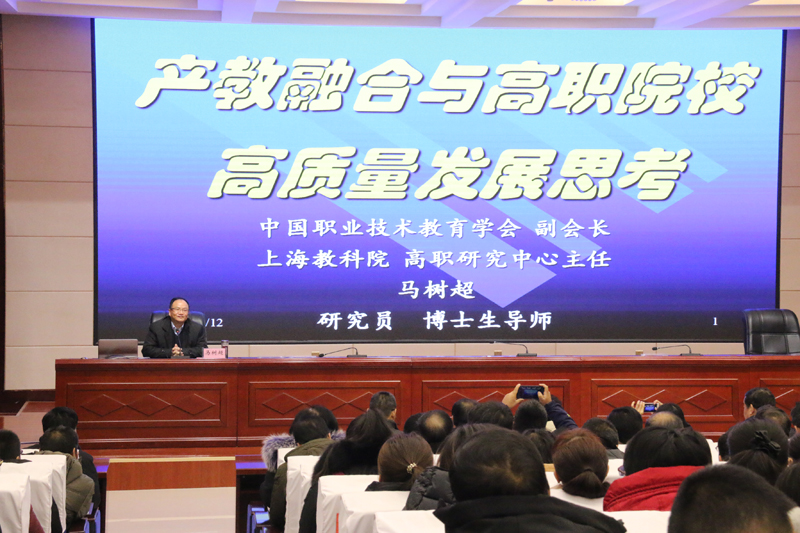 2018年12月11日,學(xué)院邀請到全國著名職業(yè)教育專家,上海教科院高職研究中心主任,博士生導(dǎo)師、馬樹超研究員來我院指導(dǎo)辦學(xué)工作,并作了“綠洲講壇”《產(chǎn)教融合與高職院校高質(zhì)量發(fā)展》主旨報(bào)告。