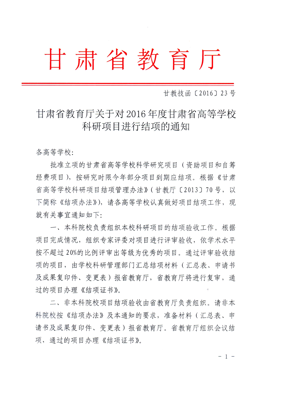 轉(zhuǎn)發(fā)甘肅省教育廳《關(guān)于2016年度甘肅省高等學(xué)??蒲许椖拷Y(jié)項的通知》