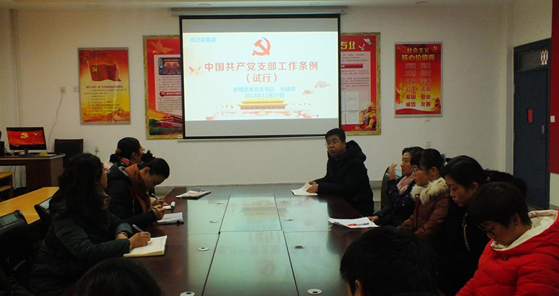 為進(jìn)一步加強(qiáng)黨支部標(biāo)準(zhǔn)化建設(shè), 12月27日,護(hù)理系黨總支在明遠(yuǎn)樓103黨員活動(dòng)室開展學(xué)習(xí)活動(dòng),護(hù)理系黨總支書記張建輝以《中國共產(chǎn)黨支部工作條例(試行)》為題,為參會(huì)黨員們進(jìn)行專題黨課輔導(dǎo),促進(jìn)全體黨員對(duì)黨建工作的認(rèn)識(shí)學(xué)習(xí)。