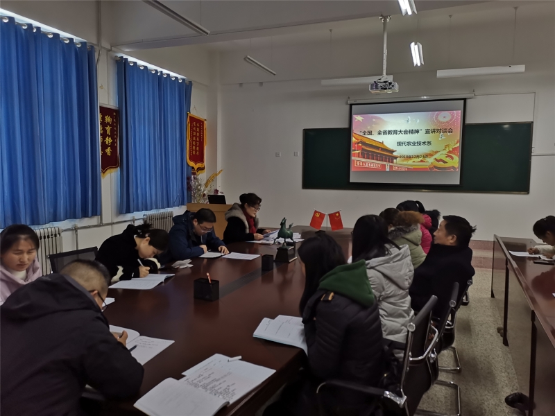 12月24日,現(xiàn)代農(nóng)業(yè)技術(shù)系在行書樓教學(xué)區(qū)309辦公室召開宣講“全國、全省教育大會精神”。宣講對談會由系黨總支書記晏素珍主持,全系教師參加并發(fā)言交流教育大會精神。