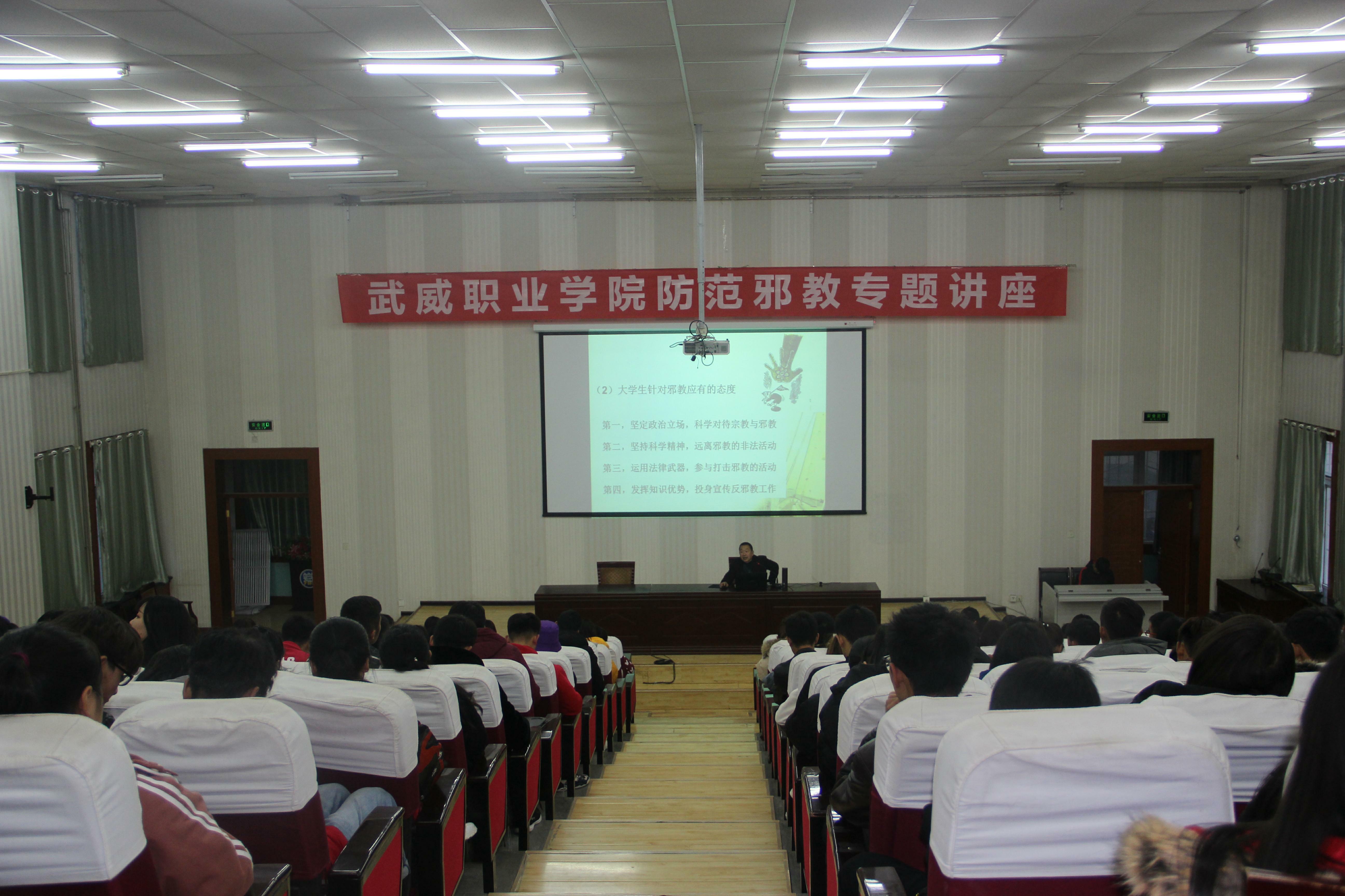 為進一步增強師生防范邪教意識,提高識別邪教、抵御邪教的能力,使廣大師生充分認(rèn)識邪教的本質(zhì)和危害,為大學(xué)生健康成長創(chuàng)造良好的育人環(huán)境,11月23日,保衛(wèi)處邀請馬克思主義學(xué)院副院長劉心副教授在學(xué)院正德廳做了防范邪教專題講座,保衛(wèi)處工作人員,各系輔導(dǎo)員代表和學(xué)生代表近200余人聆聽了講座。