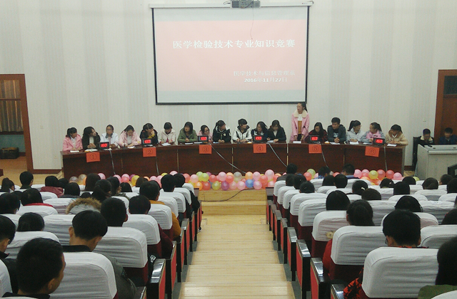 為提高學(xué)生對(duì)專業(yè)知識(shí)的掌握水平,培養(yǎng)主動(dòng)學(xué)習(xí)的良好學(xué)風(fēng),11月27日晚,醫(yī)學(xué)技術(shù)與信息管理系在尚德樓正德廳舉行醫(yī)學(xué)檢驗(yàn)技術(shù)專業(yè)知識(shí)競賽。系主任楊如松,學(xué)院組織人事處副處長魏全民,系全體行政人員,醫(yī)學(xué)檢驗(yàn)技術(shù)教研室主任、任課教師及檢驗(yàn)專業(yè)全體班主任、學(xué)生代表參加本次活動(dòng)。