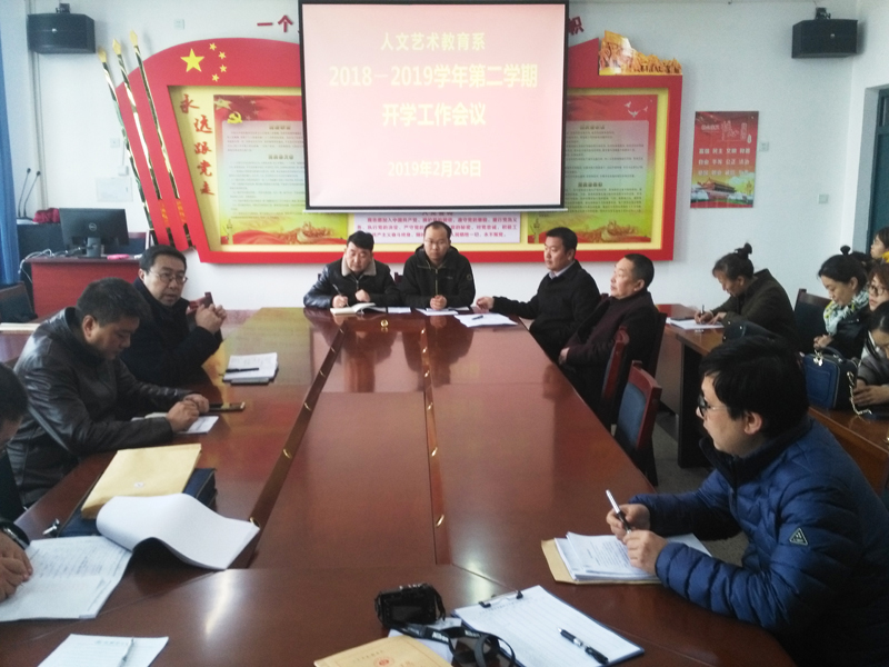 2月26日下午,人文藝術教育系在勵勤樓209會議室召開了新學期開學工作會議。會議由系黨總支書記胡靜峰主持,全系教師參加。