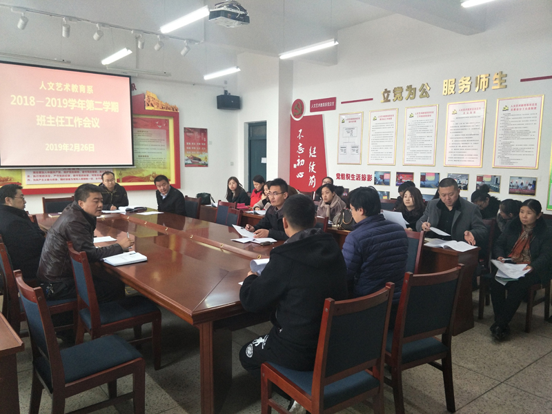 2月26日,人文藝術(shù)教育系全體班主任和學(xué)生工作管理人員在勵勤樓209會議室,召開新學(xué)期學(xué)生管理工作會議,會議由系黨總支書記胡靜峰同志主持,系副主任李欣做具體工作安排。