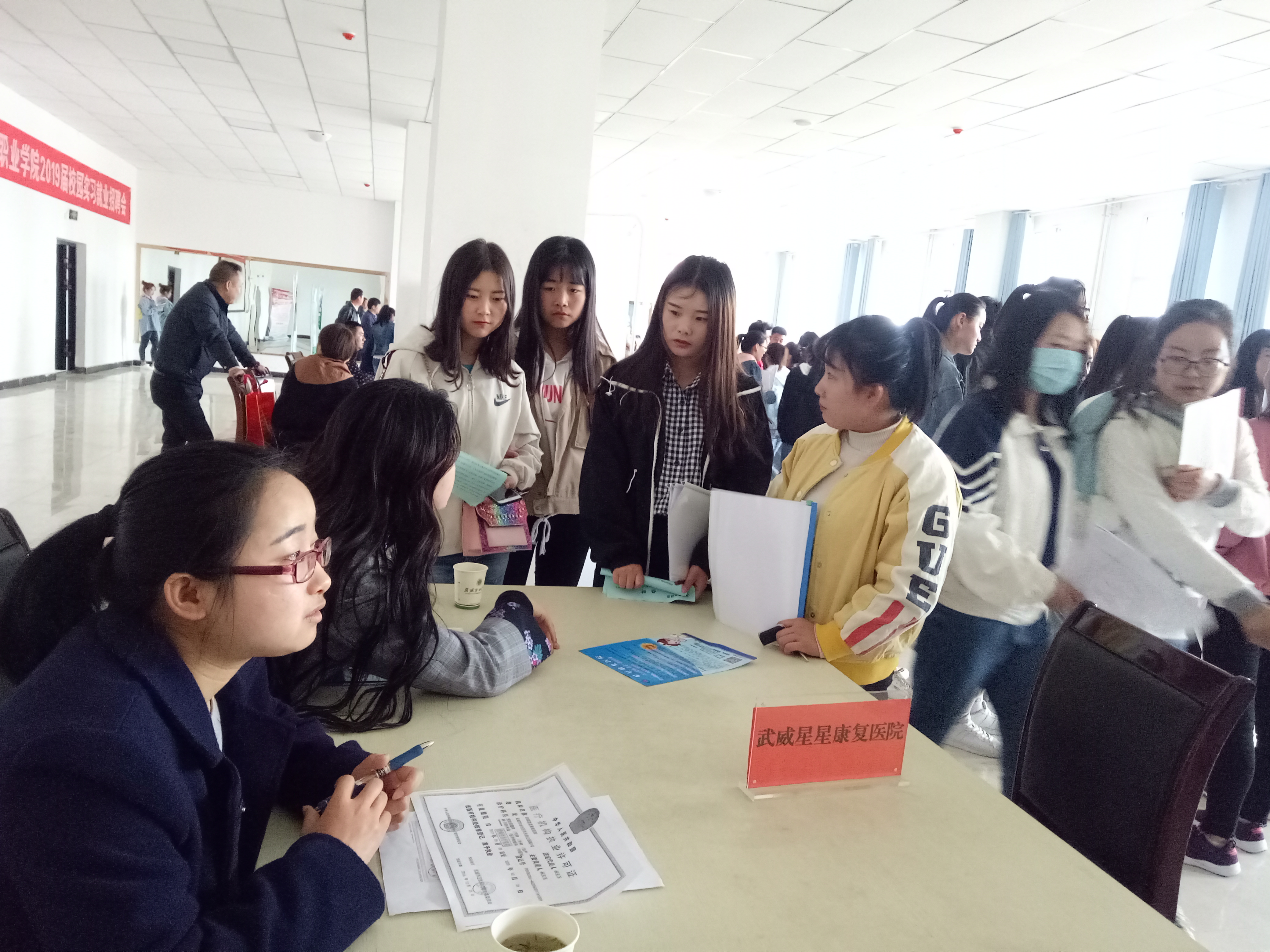 參加本次招聘會的共有來自省內外醫(yī)療相關單位10家,包括東莞定遠陶齒制品有限公司、康泰健美醫(yī)療科技(深圳)有限公司、武威遠方藥業(yè)、武威市西藝義齒制作有限公司、?武威寶山口腔醫(yī)院、紅山窯衛(wèi)生院、武威星星康復醫(yī)院等共提供150多個就業(yè)崗位,基本滿足我系四個專業(yè)畢業(yè)的就業(yè)需求。