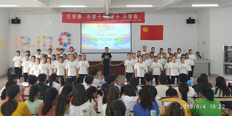 6月4日下午5點20分,人文藝術教育系2018級學前教育大專(10)班在勵勤樓階梯教室開展了活力團支部活力展示。