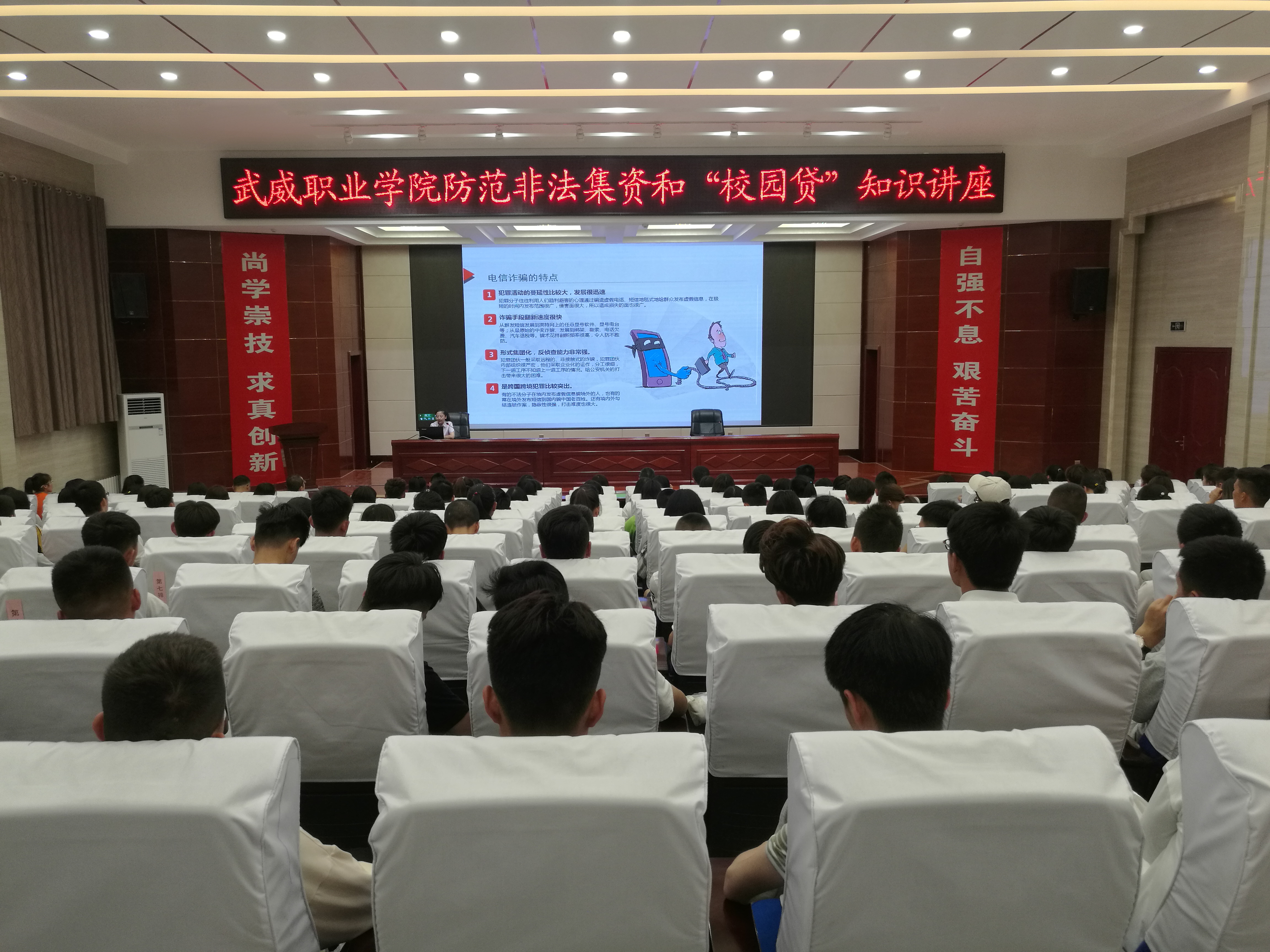 為深入貫徹落實(shí)甘肅省2019年防范非法集資和金融領(lǐng)域掃黑除惡宣傳月活動(dòng)的有關(guān)精神,保護(hù)廣大師生的合法權(quán)益。6月9日晚,學(xué)院邀請中國農(nóng)業(yè)銀行武威支行風(fēng)險(xiǎn)管理部工作人員朱琳在學(xué)院菁英廳作了關(guān)于防范非法集資和校園貸知識講座,學(xué)院副院長王永緒出席活動(dòng),保衛(wèi)處、計(jì)劃財(cái)務(wù)處負(fù)責(zé)同志及各系師生代表200余人聆聽了講座。