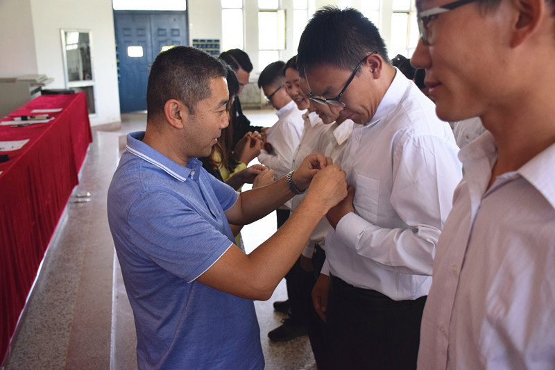 羅小勇為新黨員佩戴黨徽,并代表學(xué)院黨委對新入黨的56名預(yù)備黨員表示熱烈的祝賀和歡迎。他強(qiáng)調(diào),作為預(yù)備黨員,一要恪守入黨誓詞,踐行莊嚴(yán)承諾,堅(jiān)定不移地從思想和行動(dòng)上與黨組織保持高度一致,牢固樹立“四個(gè)意識(shí)”,增強(qiáng)“四個(gè)自信”,堅(jiān)決做到“兩個(gè)維護(hù)”,激發(fā)奮發(fā)向上的學(xué)習(xí)、生活和工作熱情,努力營造踏實(shí)務(wù)實(shí)的學(xué)習(xí)氛圍;二要充分發(fā)揮先鋒模范作用,在各自的學(xué)習(xí)生活中體現(xiàn)黨的先進(jìn)性,成為同學(xué)中的旗幟標(biāo)桿力量;三要牢記全心全意為人民服務(wù)的宗旨,努力實(shí)踐,立志成為中國特色社會(huì)主義事業(yè)奮斗終身的有用人才。