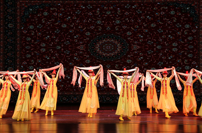 大型歌舞劇《裕固風(fēng)華》是河西學(xué)院師生歷經(jīng)三年精心打造的首部原創(chuàng)教學(xué)劇目,是教育部、文化和旅游部、財(cái)政部高雅藝術(shù)進(jìn)校園活動省級巡演劇目,是省委宣傳部和省文旅廳“春綠隴原”展演劇目,是甘肅省學(xué)校美育改革與發(fā)展重大項(xiàng)目、甘肅省高校美育教育舞臺示范精品。全劇由《序》《東遷》《家園》《傳說》《婚禮》五個篇章組成,以裕固族傳統(tǒng)民歌、舞蹈、民俗為載體進(jìn)行創(chuàng)作和改編,以情景歌舞的形式表現(xiàn)裕固族的歷史變遷和民俗文化,以講述、吟誦、歌舞的手法,再現(xiàn)了裕固族的發(fā)展歷史和多姿多彩的獨(dú)特文化,以高品位的藝術(shù)水準(zhǔn)弘揚(yáng)、展現(xiàn)了中華民族傳統(tǒng)文化的優(yōu)良基因和時代活力。