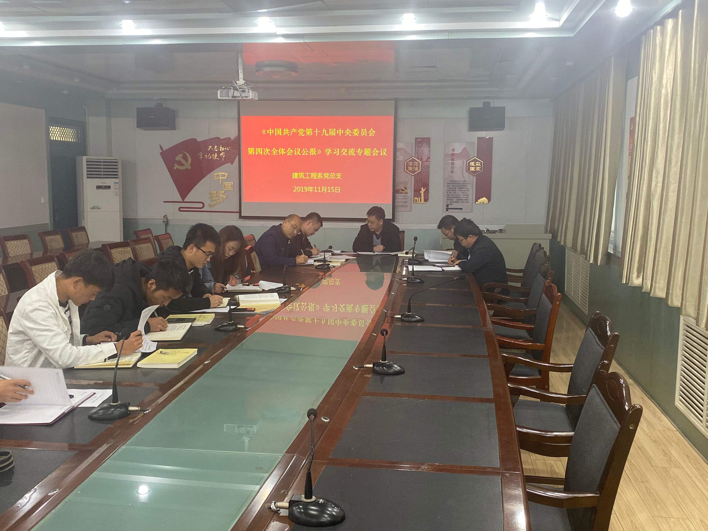 11月15日下午,建筑工程系黨總支在博學(xué)樓二樓黨員活動室召開中國共產(chǎn)黨第十九屆中央委員會第四次全體會議精神學(xué)習(xí)心得交流會議,會議由黨總支書記孫潤元同志主持,建筑工程系全體教師參加會議。