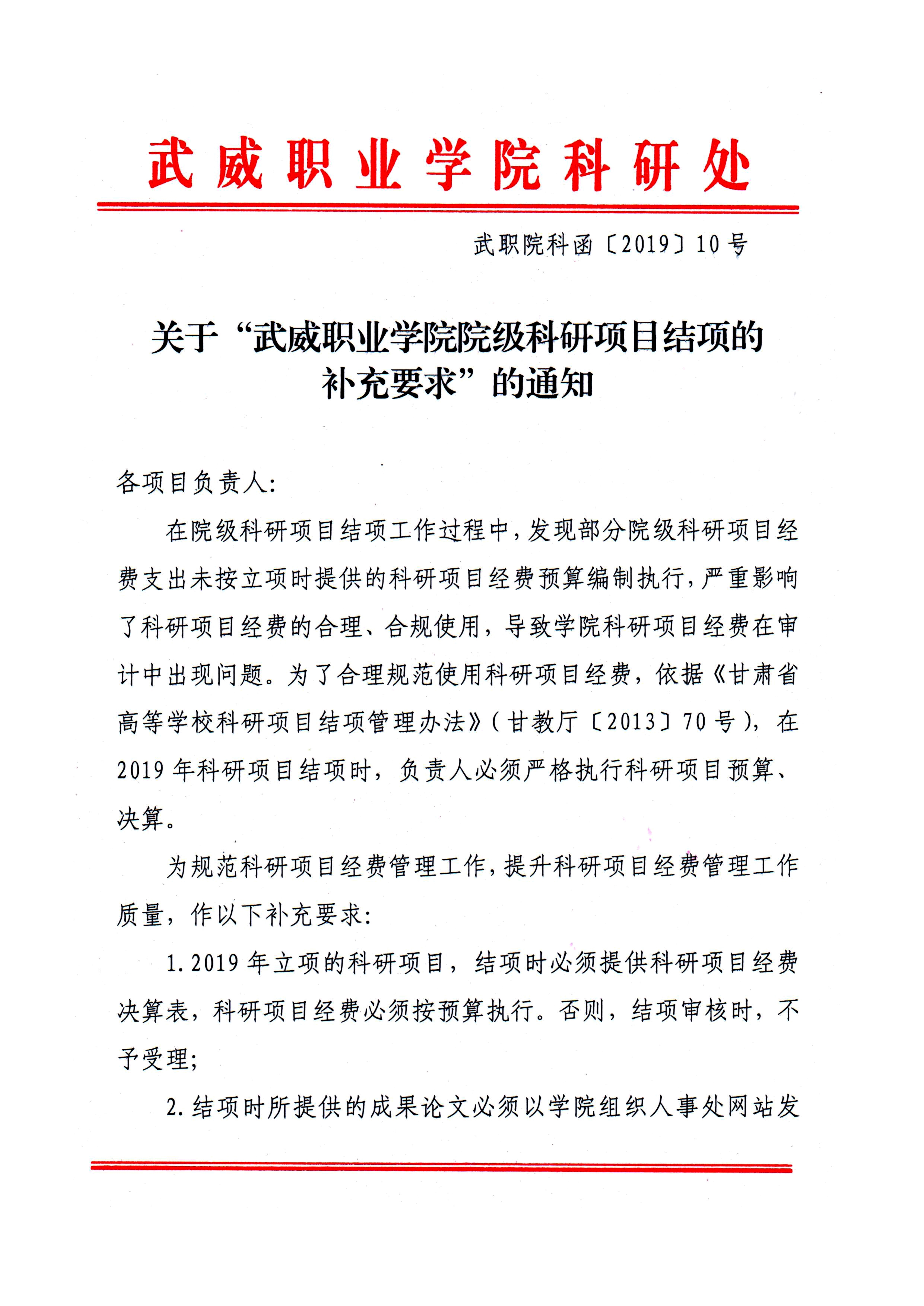 關(guān)于“武威職業(yè)學院院級科研項目結(jié)項的補充要求”的通知