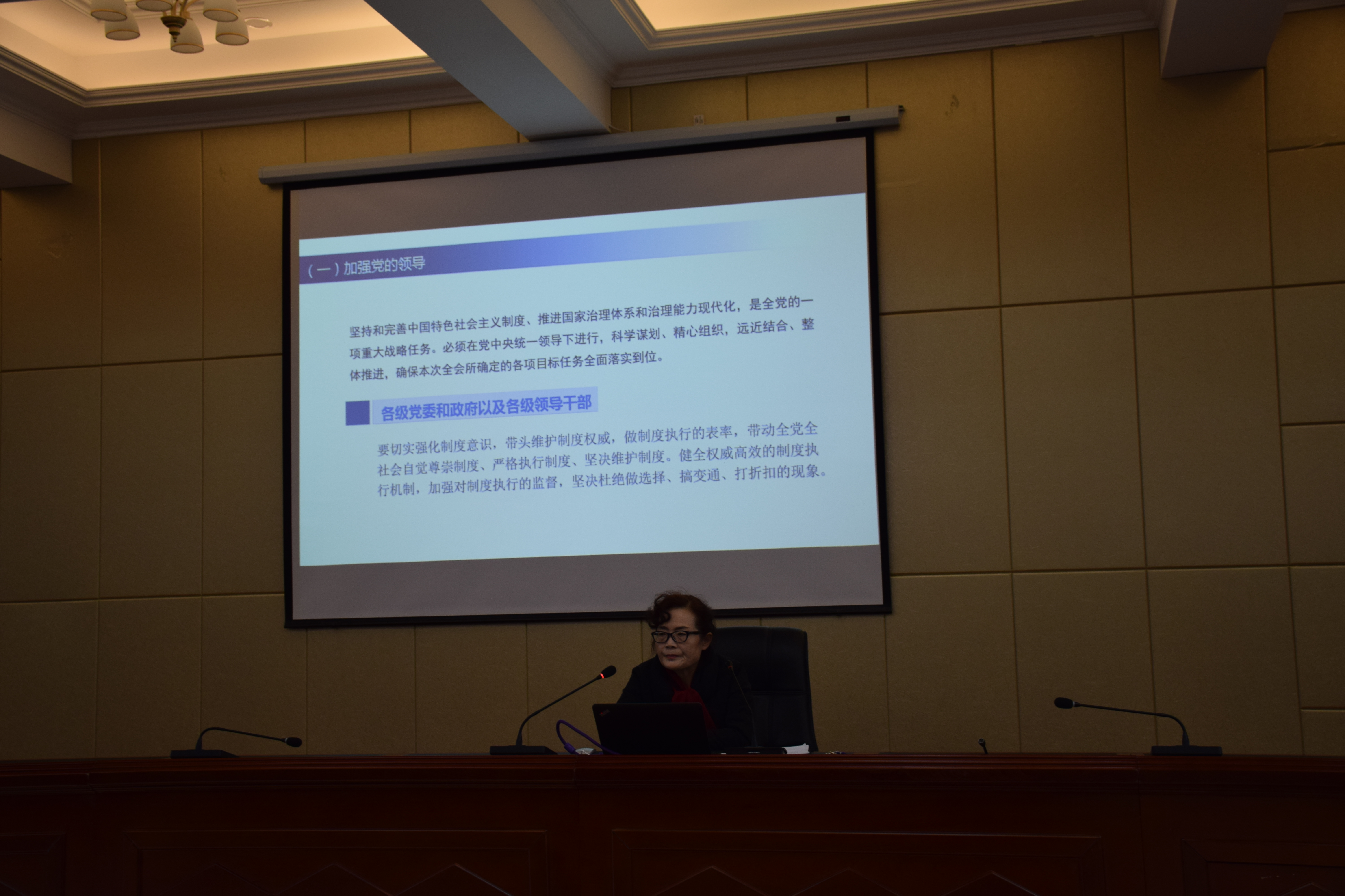 晏素珍以《中共中央關于堅持和完善中國特色社會主義制度推進國家治理體系和治理能力現(xiàn)代化若干重大問題的決定》的學習與解讀為題,重點就全會召開的背景、意義和看點;《決定》的基本框架和主要內(nèi)容以及抓好全會的學習貫徹的具體要求進行了宣講。要求廣大師生提高政治站位,樹牢“四個意識”,堅定“四個自信”,做到“兩個維護”,推動全會精神在全系落地生根、取得扎實成效。為實現(xiàn)“兩個一百年”奮斗目標,實現(xiàn)中華民族偉大復興的中國夢而努力奮斗。