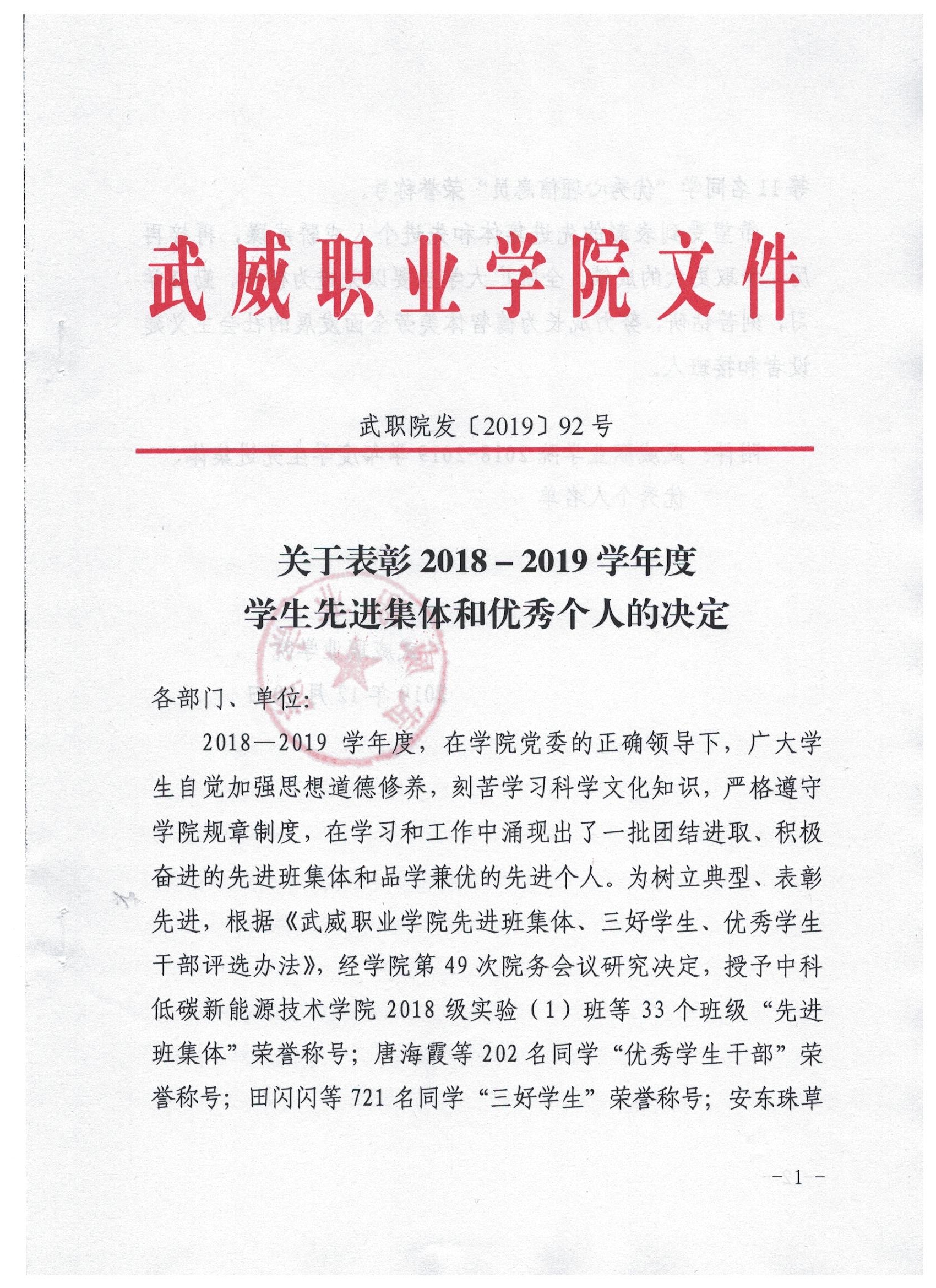 關(guān)于表彰2018-2019學(xué)年度學(xué)生先進(jìn)集體和優(yōu)秀個人的決定