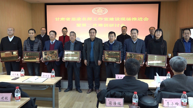 推進會上,省委教育工委專職副書記張曉東為甘肅省思想政治理論課劉先春、何繼齡、翟存祥等10個甘肅省思政名師工作室授牌,并為西北師范大學(xué)何繼齡名師工作室揭牌。