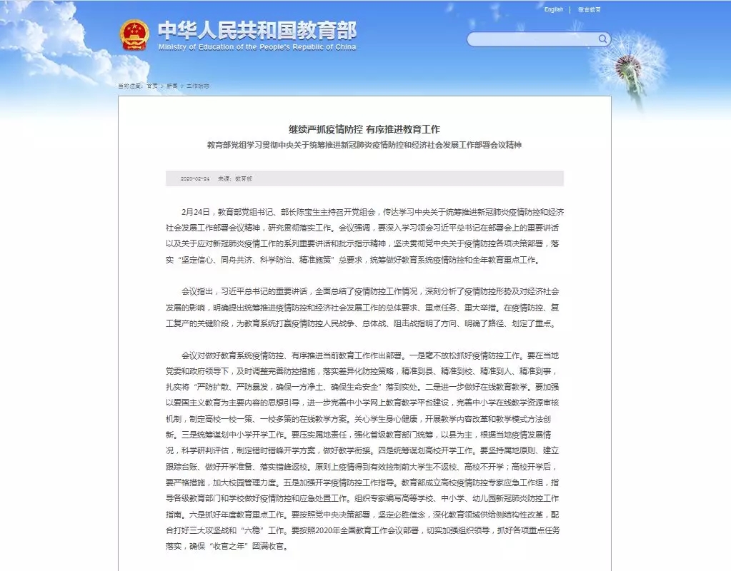 作者: 來源:教育部官網(wǎng) 發(fā)布時間:2020年02月25日 點擊數(shù):812 字號:【