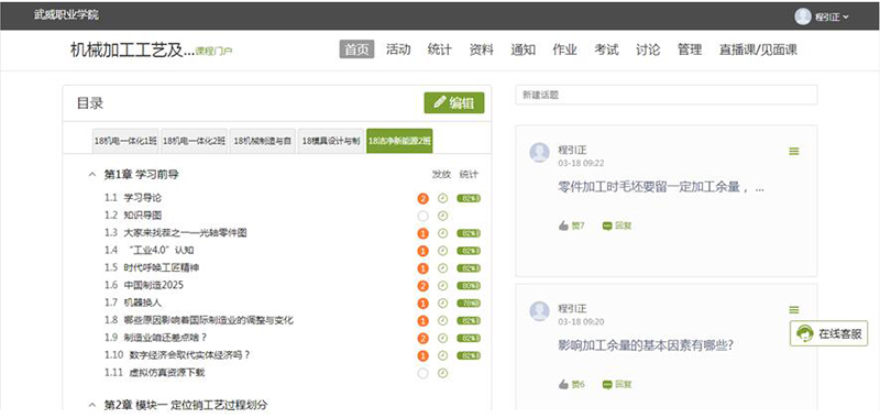 一是聯(lián)系學生,為加強教學過程班主任與任課教師之間溝通、應對教學過程突發(fā)情況,機械系要求所有班主任為各班建設了釘釘教學專用群,并按照班級課表邀請任課教師加入教學群確保在線教學順利實施。