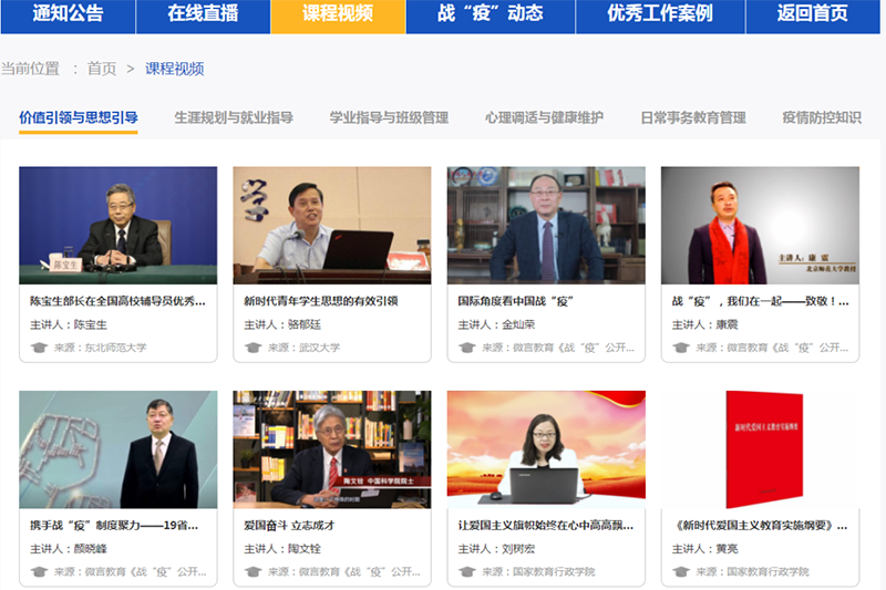 為推進當前教育系統(tǒng)疫情防控和學生思想政治教育工作,由教育部主辦,高校思想政治工作隊伍培訓研修中心承辦的“共抗疫情顯擔當,愛國力行育新人”全國高校輔導員網(wǎng)絡培訓示范班開班。
