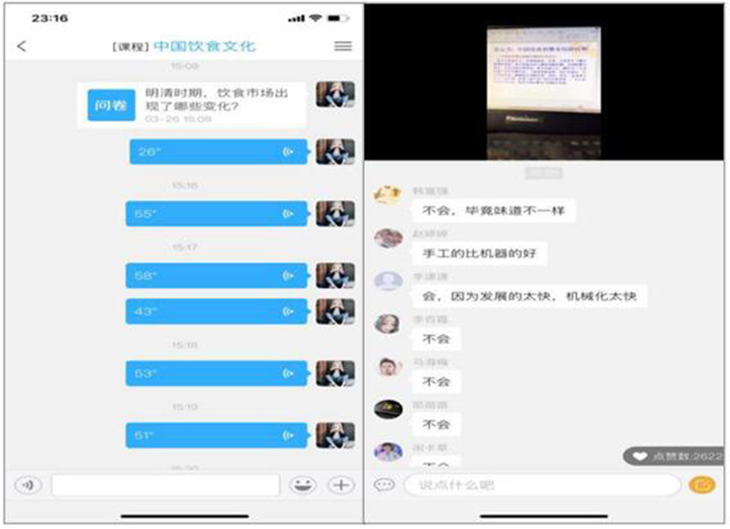 經(jīng)濟(jì)管理系張海燕老師,充分利用網(wǎng)絡(luò)資源上好線上課程,巧妙引導(dǎo)學(xué)生提高教學(xué)效果。利用“自建+在線資源優(yōu)選”的方式豐富《隴原民俗文化》《中國飲食文化》兩門課程的線上教學(xué)資源,并采用錄屏方式將網(wǎng)絡(luò)資源進(jìn)行加工,為自建課程添加教學(xué)元素。在課堂講授過程中,根據(jù)教學(xué)內(nèi)容與個人喜好靈活選擇直播、語音教學(xué)、自學(xué)+答疑等授課方式。為達(dá)到良好教學(xué)的效果,課中通過圖片、視頻、音頻、形式多樣的教學(xué)活動、趣味性作業(yè)等激發(fā)學(xué)生自主學(xué)習(xí)的興趣,活躍課堂氣氛,并掌握學(xué)生學(xué)習(xí)動態(tài)。