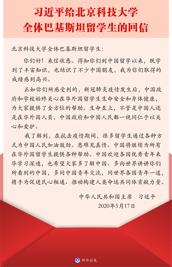 專(zhuān)題會(huì)后,國(guó)際合作與交流處工作人員組織留學(xué)生召開(kāi)學(xué)習(xí)貫徹習(xí)近平總書(shū)記給北京科技大學(xué)全體巴基斯坦留學(xué)生回信精神專(zhuān)題視頻座談會(huì)。會(huì)議要求,全體留學(xué)生要認(rèn)真學(xué)習(xí)回信,要深刻領(lǐng)會(huì)回信的重大意義,要深刻領(lǐng)會(huì)回信的真情實(shí)感。留學(xué)生們一致對(duì)學(xué)院在新冠肺炎疫情暴發(fā)后給予的關(guān)心表示感謝,表示學(xué)有所成后要投身“一帶一路”建設(shè)、為增進(jìn)中外友誼做出貢獻(xiàn)。