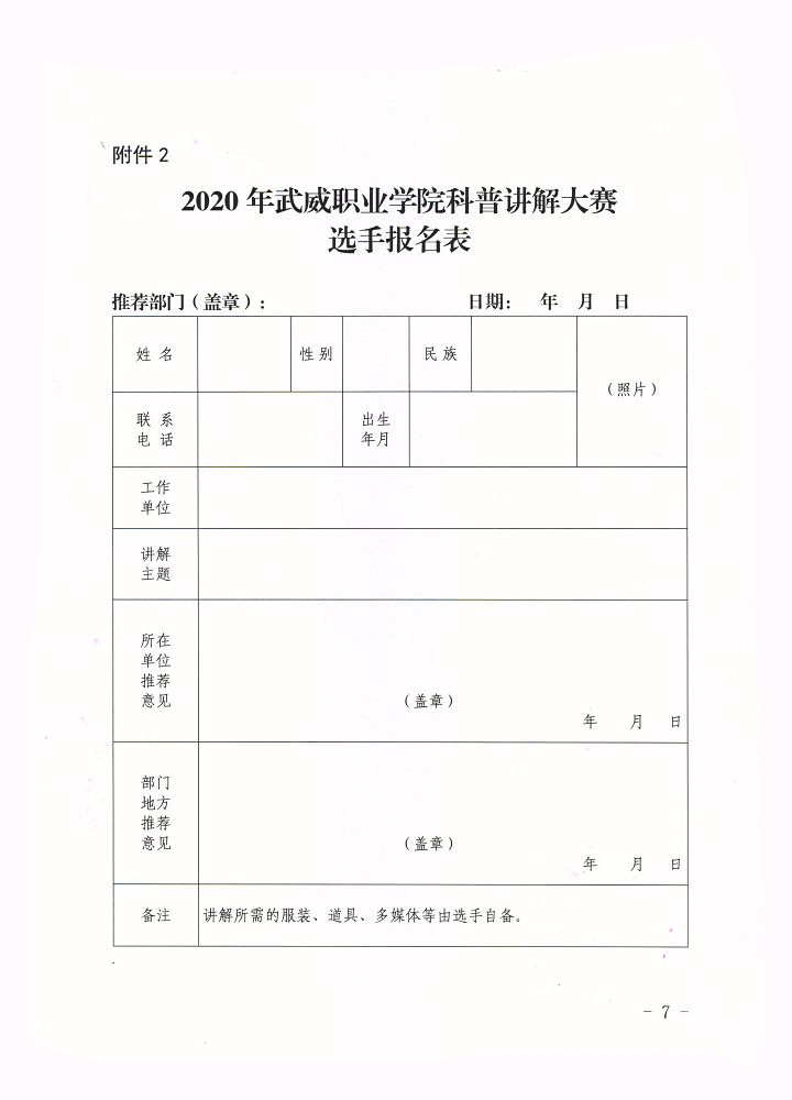 附件下載:2020年武威職業(yè)學(xué)院科普講解大賽報(bào)名表