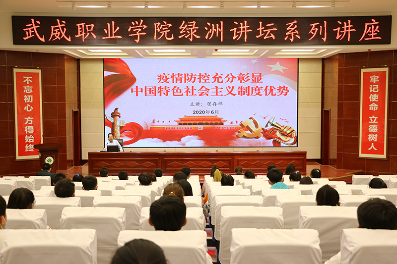 6月9日,武威職業(yè)學(xué)院“綠洲講壇”第33期在學(xué)院菁英廳舉行,學(xué)院黨委副書記翟存祥教授作了題為《疫情防控充分彰顯中國特色社會(huì)主義制度優(yōu)勢》的講座。中科低碳新能源技術(shù)學(xué)院師生代表共150余人參加了報(bào)告會(huì)。