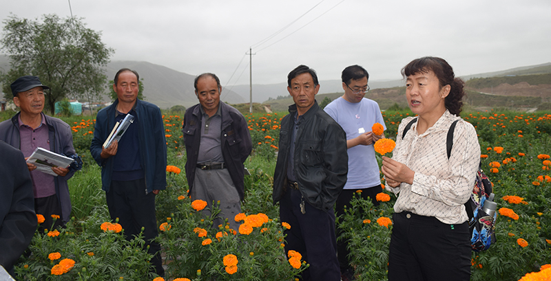座談會結(jié)束后,銀春花副教授做了題為“花?;ɑ苓x擇”的專題講座,就花海品種的選擇及種植養(yǎng)護的關(guān)鍵問題做了詳細的講解,參加培訓的人員紛紛表示,收獲頗豐,為今后黑松驛鎮(zhèn)的在美化環(huán)境,花海建設(shè)中提供了依據(jù)。銀春花還在花?,F(xiàn)場指導農(nóng)戶開展了花卉的田間管理及病蟲害防治。