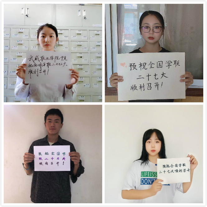 青聯(lián)、學聯(lián)是黨領導下的群團組織,青聯(lián)、學聯(lián)事業(yè)是黨的青年工作的重要組成部分。值此盛會即將召開之際,武職院學子們紛紛送上他們對全國學聯(lián)二十七大的真誠祝福。