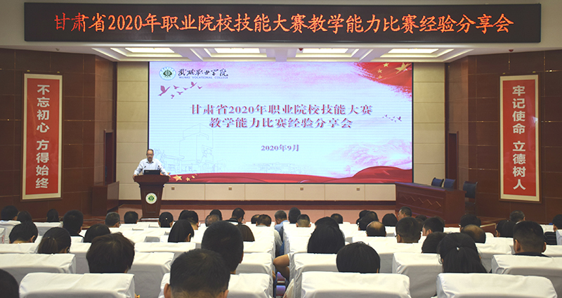 2020年9月2日上午,學院在菁英廳舉辦甘肅省2020年職業(yè)院校技能大賽教學能力比賽經(jīng)驗分享會,學院各級參賽隊員、院領導、中層以上管理干部、教學能力比賽指導組成員以及自愿報名參加分享會人員共210人參加,會議由學院黨委副書記翟存祥主持。