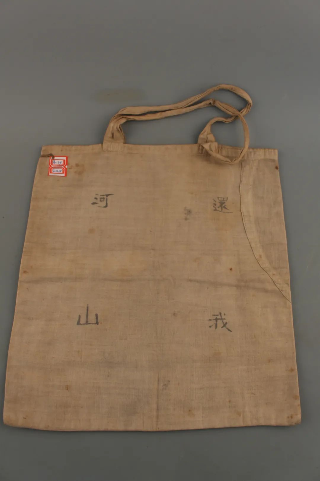 “還我河山”,車向忱夫婦用過的手提兜上,四個字依然清晰?!熬乓话恕笔伦兒螅瑬|北淪陷,教育家車向忱多次往返關(guān)內(nèi)外,積極組織抗日救亡運(yùn)動,還創(chuàng)辦了許多平民學(xué)校。這個手提兜原為白色,歷經(jīng)歲月和戰(zhàn)火,現(xiàn)已陳舊發(fā)黃。布兜正面繡有黑色“收復(fù)東北失地,1938”字樣,背面寫有“還我河山”字樣。