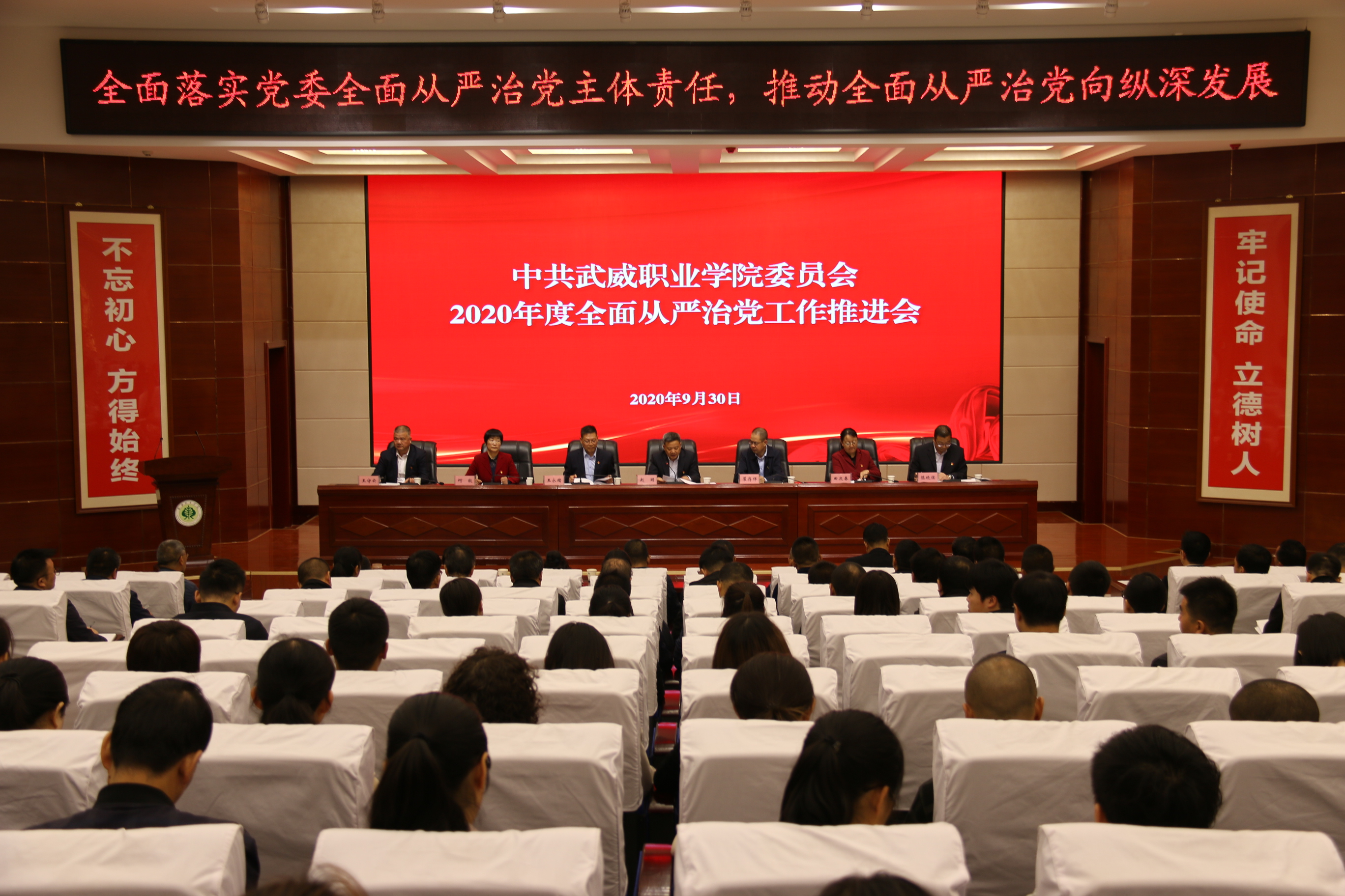 9月30日上午,學(xué)院2020年度全面從嚴治黨工作推進會在大學(xué)生活動中心菁英廳召開,學(xué)院領(lǐng)導(dǎo)班子成員,各基層黨組織書記及支委班子成員、專職組織員,各部門負責人及師生黨員代表共計220人參加了會議。會議由學(xué)院黨委書記、院長趙明主持。會議套開了學(xué)院2020年下半年宣傳思想工作、意識形態(tài)工作和統(tǒng)戰(zhàn)工作推進會。