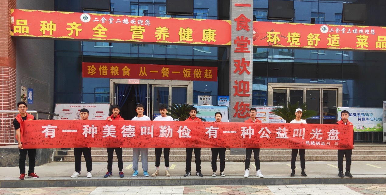 為了大力加強(qiáng)廣大師生節(jié)約糧食和光盤行動的意識,培養(yǎng)健康文明的就餐習(xí)慣。2020年9月16日武威職業(yè)學(xué)院機(jī)械制造系在學(xué)校食堂門口舉行了以“節(jié)約糧食?儉以養(yǎng)德”為主題的簽名活動。