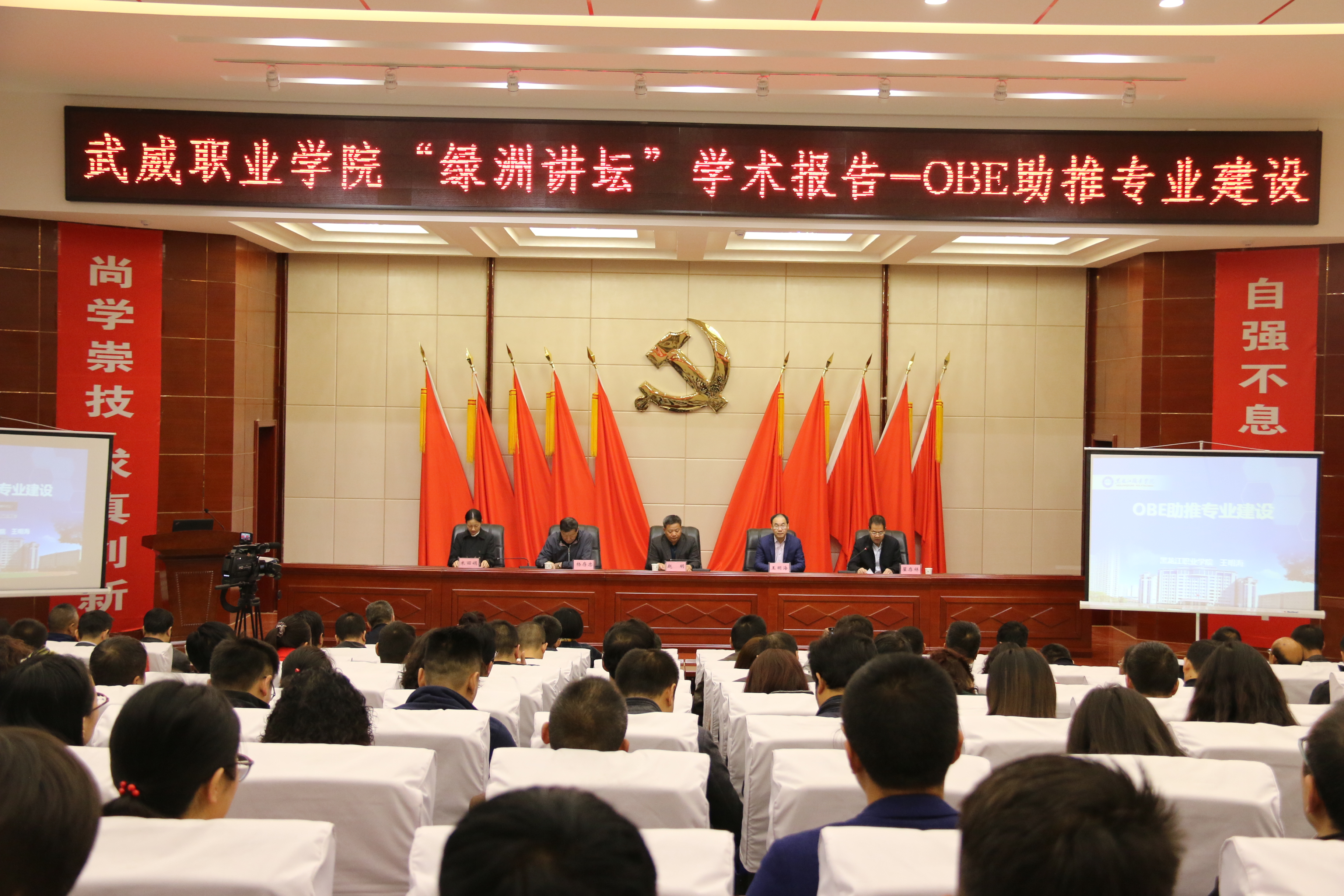 10月29日上午,“綠洲講壇”系列學(xué)術(shù)報(bào)告第二講在武威職業(yè)學(xué)院菁英廳舉行,報(bào)告會(huì)由中科低碳新能源技術(shù)學(xué)院承辦,黑龍江職業(yè)學(xué)院、黑龍江省經(jīng)濟(jì)管理干部學(xué)院副院長王明海教授主講,學(xué)院黨委委員、副院長翟存祥主持,中科低碳新能源技術(shù)學(xué)院院長楊存忠教授,中科低碳新能源技術(shù)學(xué)院院長助理米麗娟博士,武威職業(yè)學(xué)院黨委書記、院長趙明教授和學(xué)院中層干部教研室主任、骨干教師代表以及甘肅畜牧工程職業(yè)技術(shù)學(xué)院領(lǐng)導(dǎo)和教學(xué)系主任應(yīng)邀參加了本次活動(dòng)。