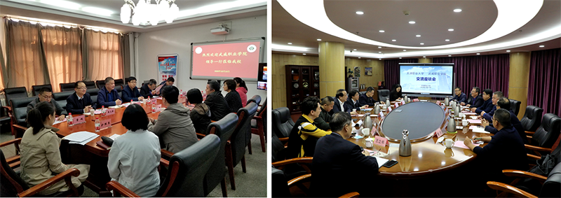 考察組一行分別與天津醫(yī)學高等專科學校、天津職業(yè)大學進行了深入交流座談。天津醫(yī)高專是國家雙高校中唯一一所衛(wèi)生類學校,在座談會上,醫(yī)高專為學院醫(yī)藥衛(wèi)生類專業(yè)群建設提出了指導意見,介紹了醫(yī)高?!?.5+1.5”學制安排促就業(yè)、教學系黨委行政雙組長抓就業(yè)、就業(yè)工作經(jīng)費動態(tài)調(diào)整引領就業(yè)的工作機制,并就下一步共同培養(yǎng)師資、互派青年骨干教師交流學習達成共識。天津職業(yè)大學是《天津—甘肅職業(yè)教育協(xié)作實施方案》合作院校,在天津職大座談會上,兩校圍繞專業(yè)群組群、產(chǎn)業(yè)學院組建模式、教學模式、探索產(chǎn)業(yè)學院建設、混合所有制二級學院建設、就業(yè)工作“一對一”模式、學生管理經(jīng)驗和成果進行了分享與交流。劉斌校長出席并主持會議,對學院的雙高建設給予了特別關心與指導。他希望,雙方作為兄弟院校,要進一步加強交流合作,努力為推動東西協(xié)作和武威職業(yè)教育高質(zhì)量發(fā)展做出新的更大的貢獻。