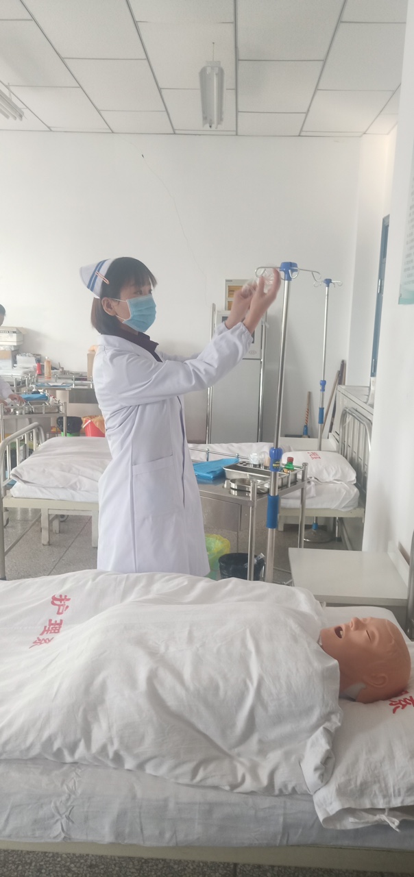 實(shí)驗(yàn)指導(dǎo)教師進(jìn)行密閉式靜脈輸液操作